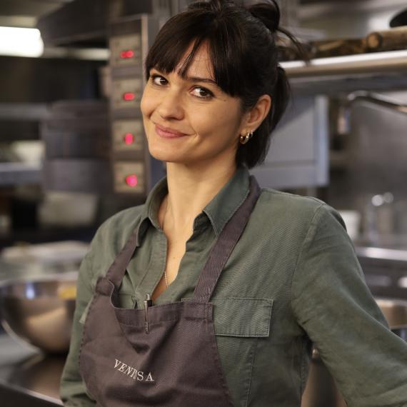 The co-chef from Venissa, on the mini island of Mazzorbo, in the Venetian lagoon, has a special profile: «After working and studying in Pisa, Paris, Maremma at Da Caino, Alto Adige at Zum Löwen», she sums up, «I read Francesco Brutto's job post [he's now her partner and co-chef]. I wanted to make my skills more current, so I applied. He hired me. In 2017, he put me here, and then we got together. People often who created the dishes at Venissa. We both did. He's more instinctive, he breaks the rules, produces fertility out of mistakes. I'm reflexive, I study».